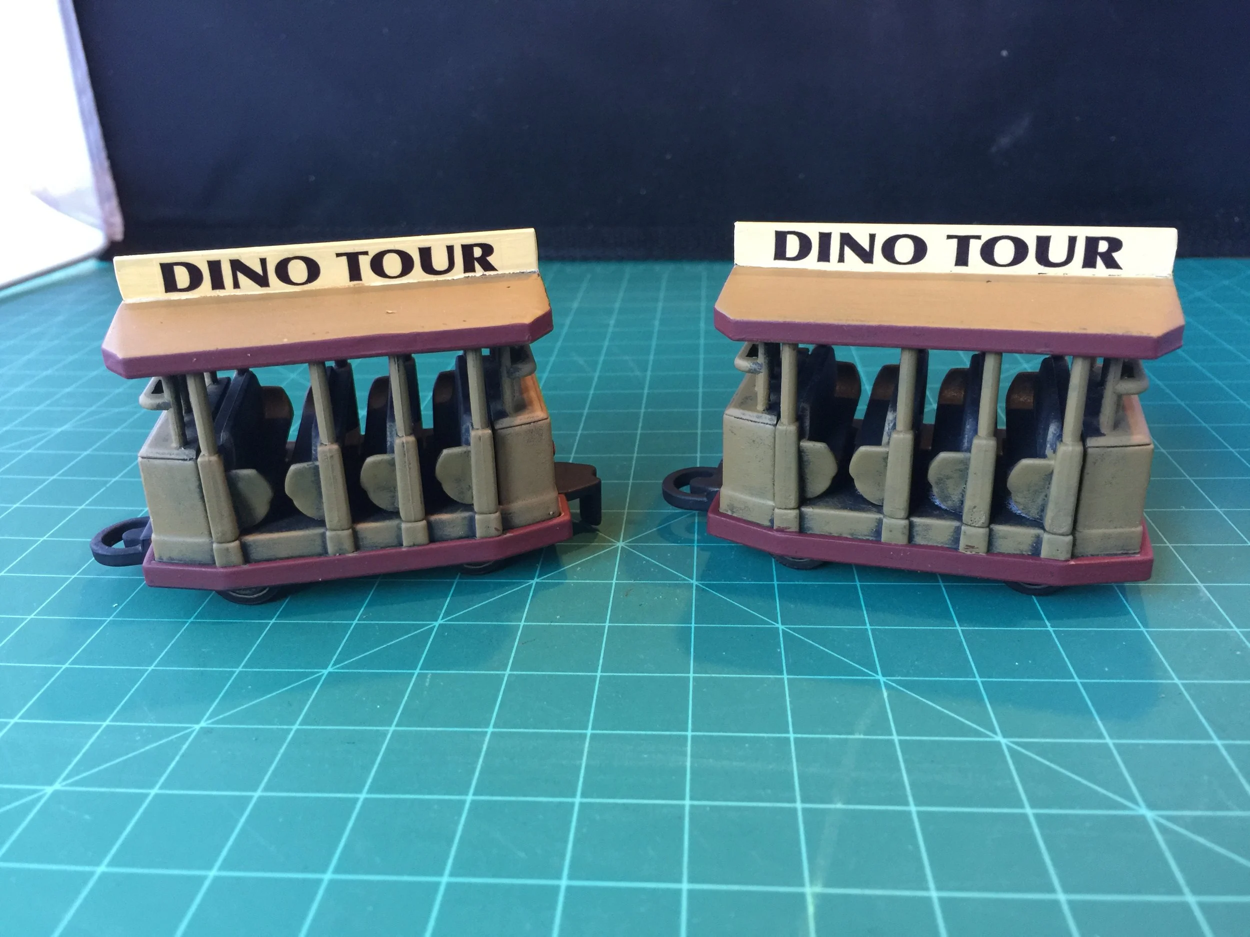 On Friday my daughter emailed me the decals she had done for my Dr. Who collection. I printed them on decal paper and sprayed them with a clear gloss fixative. Once they were completely dry I applied them to the Tardis and my Dino Tour tram, and that project is now complete.
